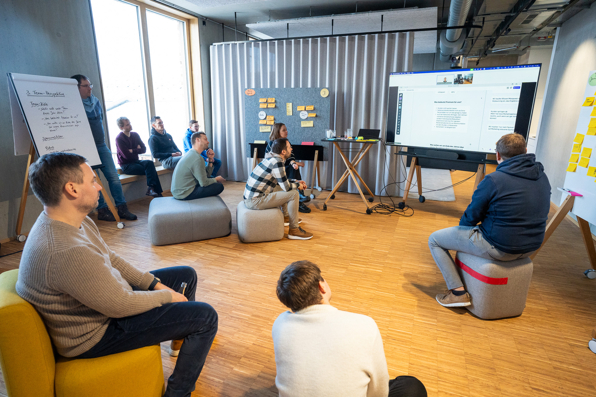 Richtig gut funktioniert hat das beim Kick-Off selbst. Für „Gruppenarbeiten“ konnten sich unsere Projektteams in die verschiedenen Räume zurückziehen und unser Campus hat gleichzeitig eine perfekte Umgebung für das Planen der nächsten Schritte und Ziele. Vor allem das physische Erarbeiten mit Whiteboards, Papier und Stift hat mal wieder richtig gutgetan und umgehend zu produktiven Diskussionen geführt.